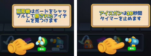 ステージが進むと↑のようなお助けアイテムが使えるようになります。