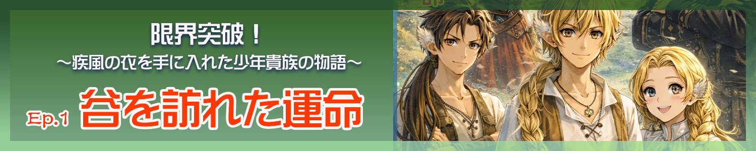 俺たちが住むこの村は、西の大陸中央にまたがる全長2700キルメ(※1キルメ=約1.2キロ)以上にもなるというリンドラ山脈の北側を、真っ二つに分断する谷の底にある。